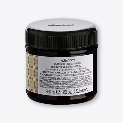 Davines Alchemic Chocolate balzam za naravno barvo las in pobarvanih las, s kostanjevimi in črnimi odtenki, lase poudari in osveži. Lasje z njegovo uporabo ohranjajo sijaj, ki je še dodatno okrepljen z vlažilnim in negovalnim učinkom.